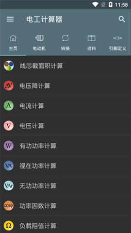 电工计算器这是一款非常好用的掌上电工工具箱,您可以轻松进行各种电阻计算、电压计算、压降计算、电流计算、无功功率计算、视在功率计算等。大大提高了计算效率,感兴趣的朋友们赶紧下载吧。