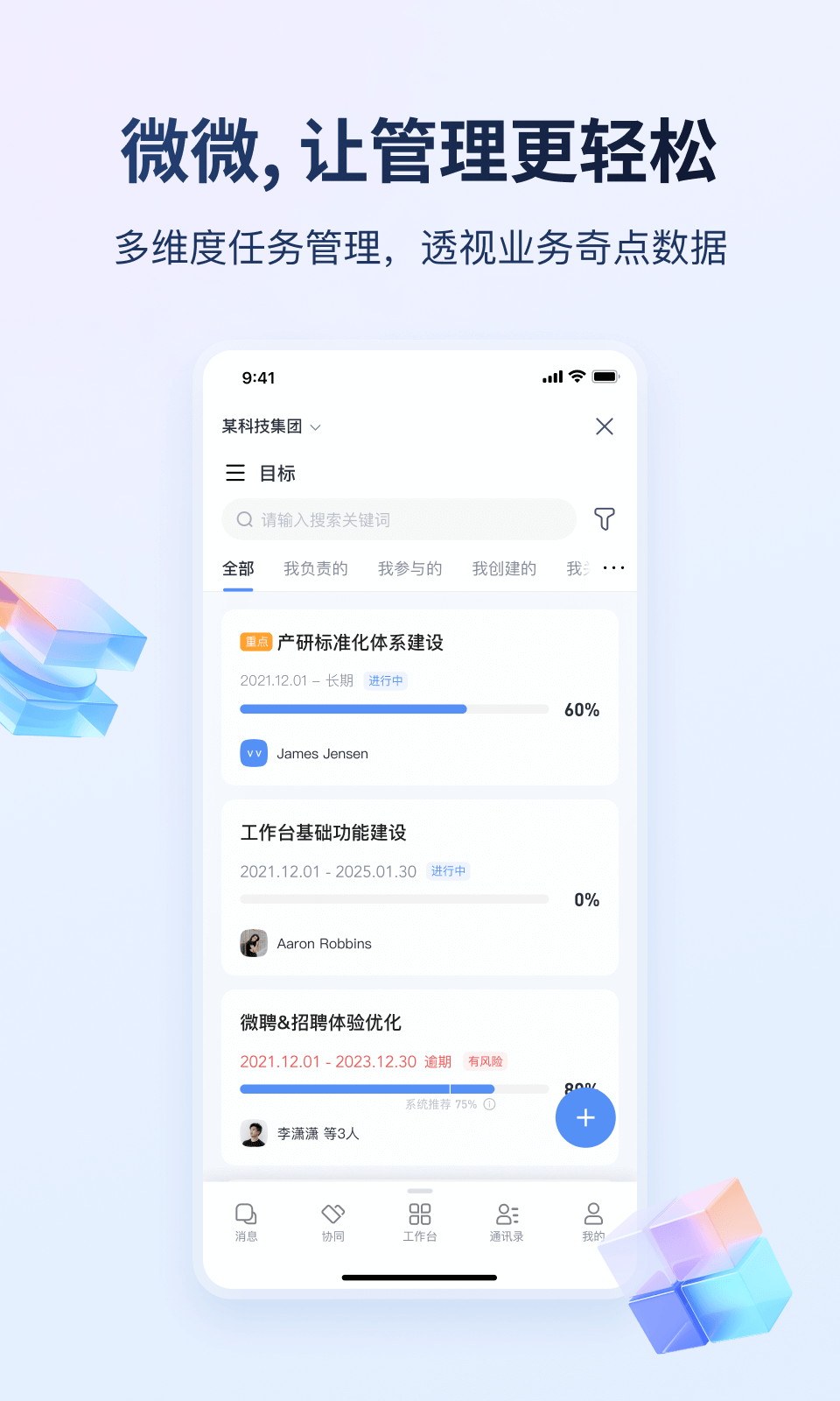 3. 多平台支持:微微工作支持手机、平板和电脑等多种设备,可以在不同平台之间无缝切换,随时随地保持工作进度。
