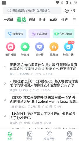 为用户提供铃声搜索列表、最新铃声列表、飞升列表、铃声设置列表,以及各类音乐和铃声列表,帮助用户快速找到想要的铃声。