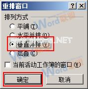 4.单击弹出窗口中“垂直并排”选项前面的按钮,然后单击“确定”选项卡;