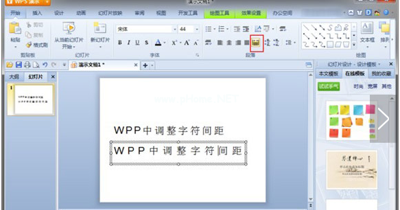 Iii .wps2012演示中ppt字间距的调整。
