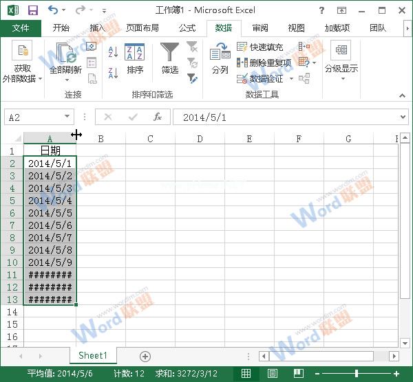 5.当您返回工作表时,您可以看到我们的值已成功转换为日期。如果#显示在某些单元格中,则意味着单元格宽度不够。我们只需要将光标放在列的右上角。当它变成双向箭头时,按下鼠标并向右拖动,增加列宽。效果如下。
