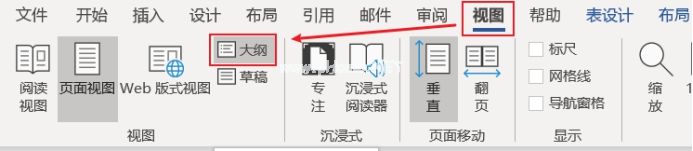 单击视图中的大纲进入大纲视图。