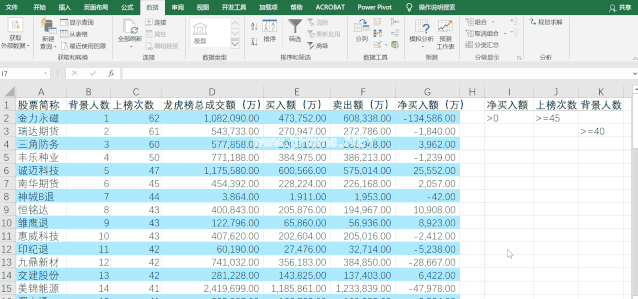 同时满足多种条件进行筛选,才能说出最复杂的情况,“And”和“Or”同时参与筛选。网购金额大于0、上市次数大于45或背景数大于40的屏幕记录。