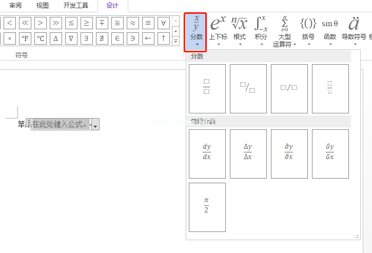 上面关于分数形式的公式基本是这样的,比较简单,需要根据实际情况来设置。