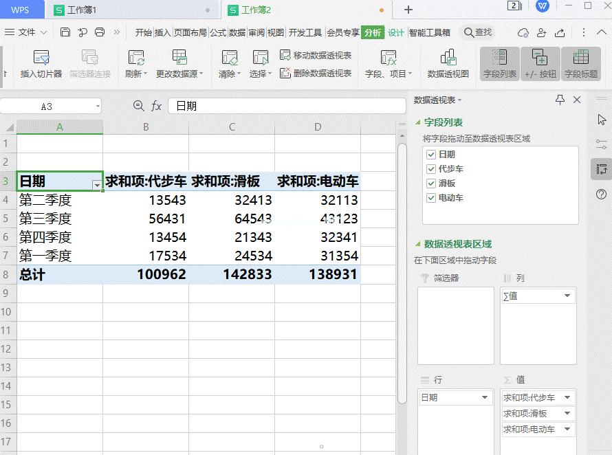 如何添加wps办公透视表的项目