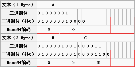 但是在转换结束的时候,如果发现三个字节不够怎么办?愿望终于实现了。我们可以用两个base64s代表一个字符,也可以用三个Base64s代表两个字符。例如,下图中的A对应的第二个base64只有两个二进制位,所以只需用零填充最后四个。因此,a对应的Base64字符是QQ。如上所述,原则是Base64字符的最小单位是一组四个字符,所以这只是两个字符,后面应该加上两个'='。其实我们不需要'='也不需要延迟解码。我们使用“=”的原因可能是考虑到多段编码的Base64字符串不会造成混淆。可见Base64的最后一个字符串只能出现一两个'=',中间不可能出现'='。下图中字符“BC”的编码过程相同。