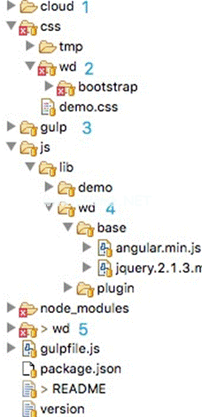 上图是推送云组件采用的目录结构,采用大口打包。CSS中有wd文件夹,主要包含一些第三方库。关键是下面,JS也是,wd是基础库。第五是最重要的。所有组件都放在这个文件夹中,每个组件包含自己的三大块:——模板、逻辑、交互、效果和样式。
