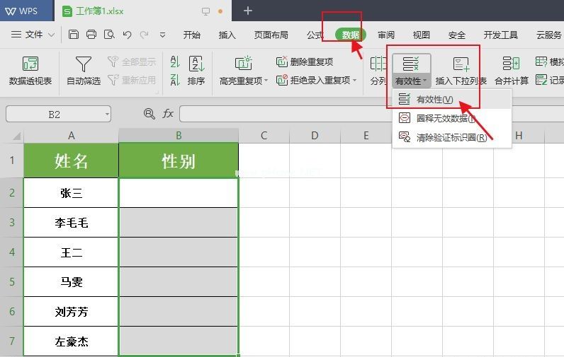 下拉菜单只需几个步骤即可完成。首先,我们打开一个新的wps表单,然后输入要输入的信息。如下表所示,选择B2-B7单元格。