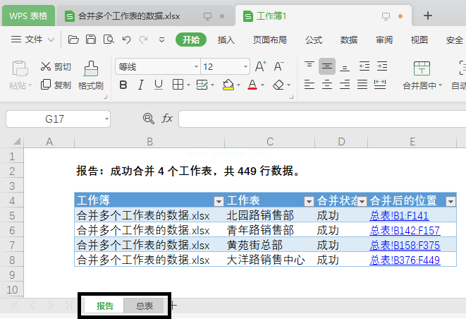 WPS如何快速合并多个工作表?