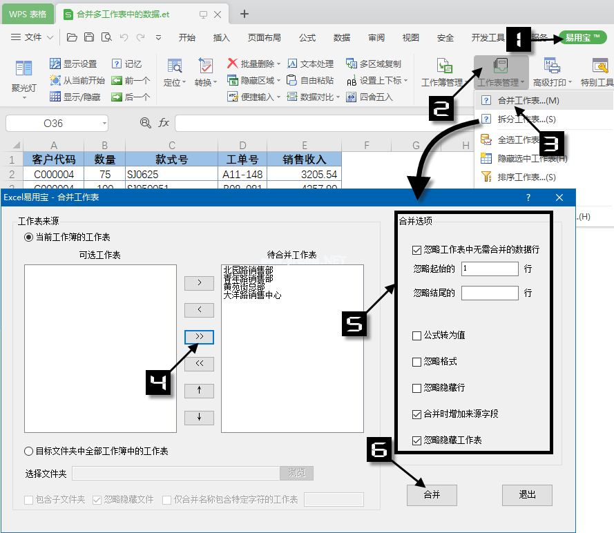 方法1:使用易宝合并多个工作表中的数据。