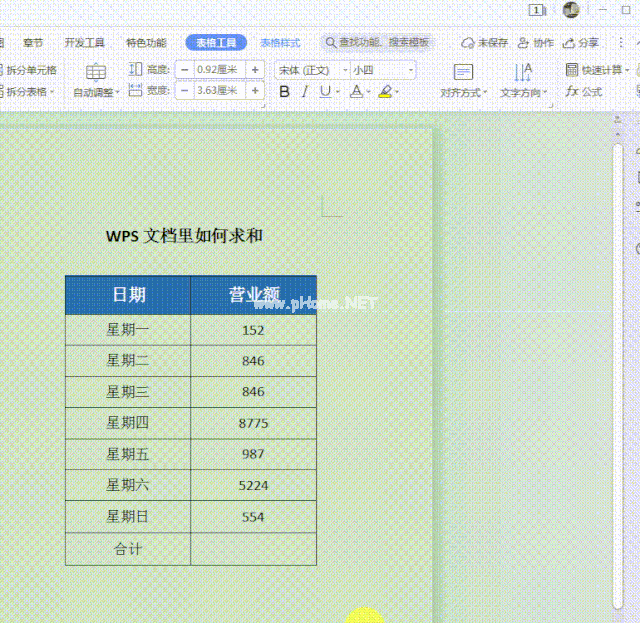 1.WPS文档中的总和。