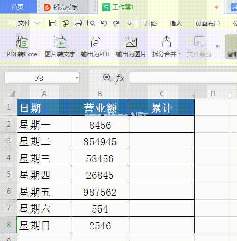 就是把每天的营业额加起来,这一步有点复杂,仔细看。