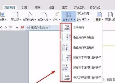 如所示,点击页面布局-文字方向工具,可以根据效果文字的多少选择文字竖排版本的样式。