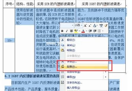 首先,选择表格中的单词以及文档其他部分的单词,右键单击并选择“段落”。