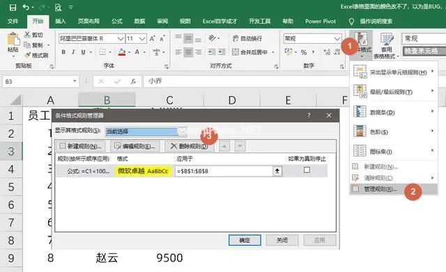 所以,当不能通过设置背景色来改变颜色时,一定是条件格式设置的问题。在开始选项下,用鼠标单击条件格式,然后选择管理规则并单击删除规则。