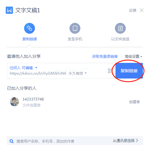 例如,共享文档时,选择任何可以编辑它的人。共享链接后,其他人可以点击进入协作模式,实时编辑内容并保存到文档中。