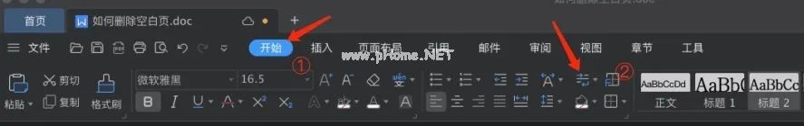 1.在电脑上打开文档,单击菜单栏上的“开始”菜单项,然后单击开始工具栏上的“段落标记”按钮。