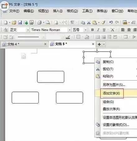 wps流程图绘制的第4步:右键单击图形并选择添加文本。