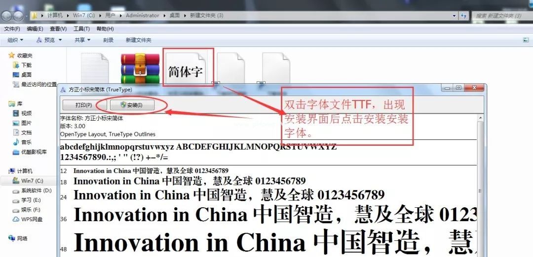第三步:安装字体。这里有两种安装字体文件的方法。