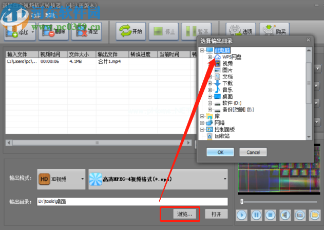 4.下一步,我们可以点击输出目录后面的浏览按钮,选择保存输出文件的位置,并根据用户的个人需求进行设置。