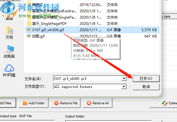 2.点击添加文件按钮后,下一步将打开界面,让我们选择转换后的文件,然后我们将选择要转换的gif图像,并点击打开。