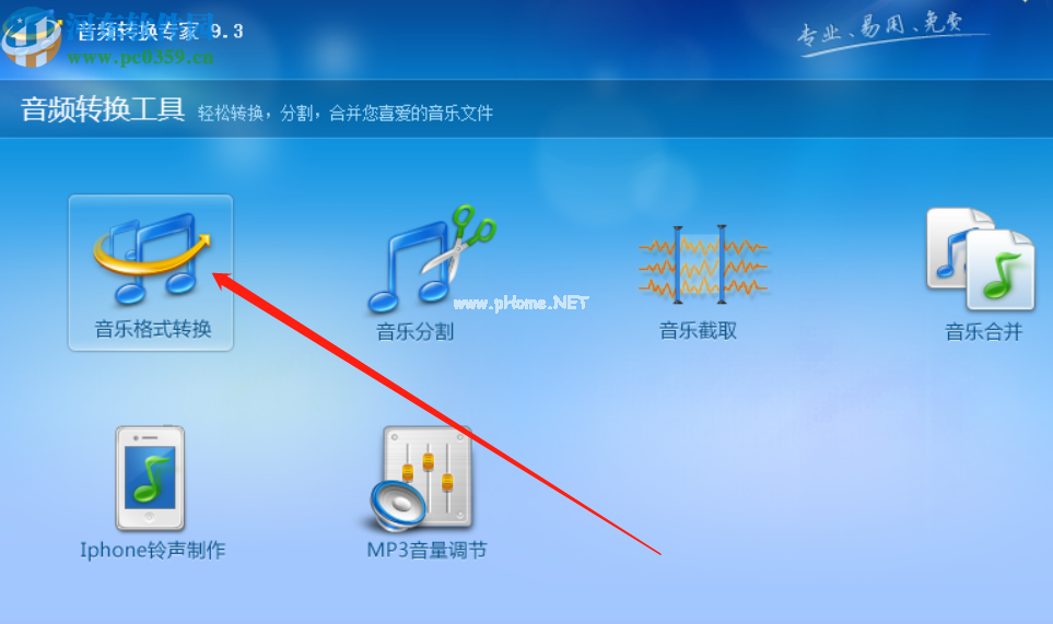 1.第一步,我们打开软件,然后点击软件主界面进入音乐格式转换功能模块。