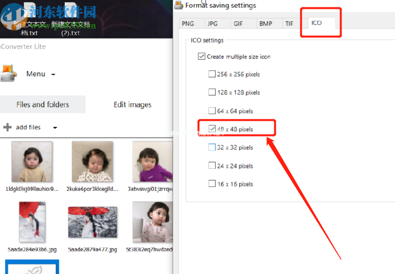 4.点击档位设置图标,进入设置转换格式界面。在我们切换到ico模块后,选择我们想要的图标大小,并选中该框。