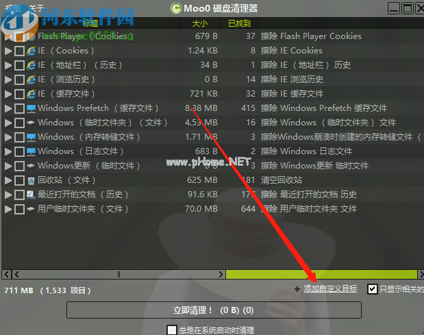 5.接下来,当你回到软件的主界面时,你可以看到我们添加了你想要清理的自定义目标,然后勾选软件扫描的可清理选项,点击下面的立即清理按钮。