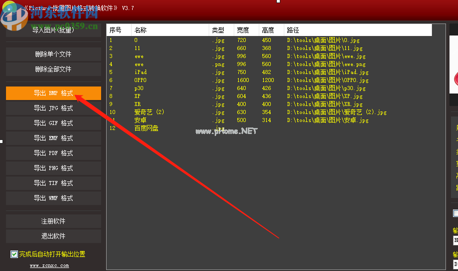4.接下来,我们可以点击界面左侧的导出BMP格式功能选项,将选中的图片导出为BMP格式的图片。