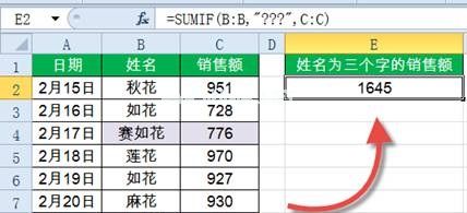 9.名称以“花”开头的销售额=SUMIF(B:B,“花*”,c:c)。