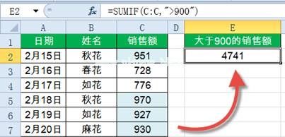 3.销售额大于900=sumif (C:c,“900”)。