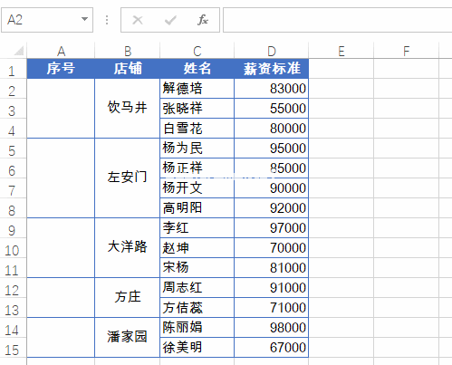 同时,选择A2:A15单元格区域,在编辑栏输入公式,按Ctrl键输入: