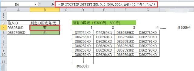 在上面500行500列的所有ID区域中查找A4单元格的ID。