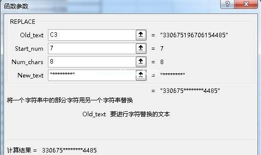 =替换(C3,7,8," * * * * * * * "),然后向下填充,以便隐藏所有身份证号的某些数字。