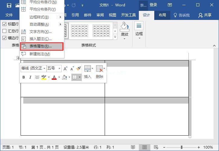 (2)拖动表格调整大小后,选择整个表格,右键单击“表格属性”命令。