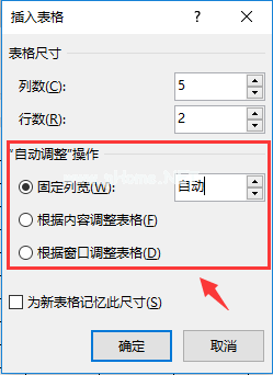 提示:在“插入表格”对话框的“自动调整”动作栏中,我们可以自定义表格的列宽,也可以根据内容(窗口)调整表格。