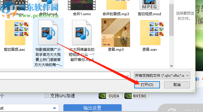 3.点击“添加文件”按钮后,将打开文件选择界面。然后,在界面中,我们点击选择目标文件,然后点击打开按钮。