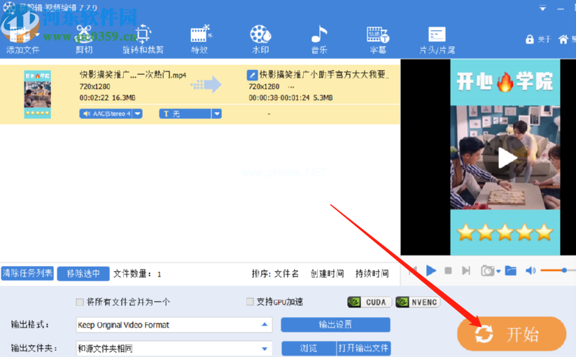 6.选择剪辑后,点击界面右下角的开始按钮,开始剪切选中的视频剪辑。有需要的朋友不妨试试小编分享的方法,希望对大家有所帮助。