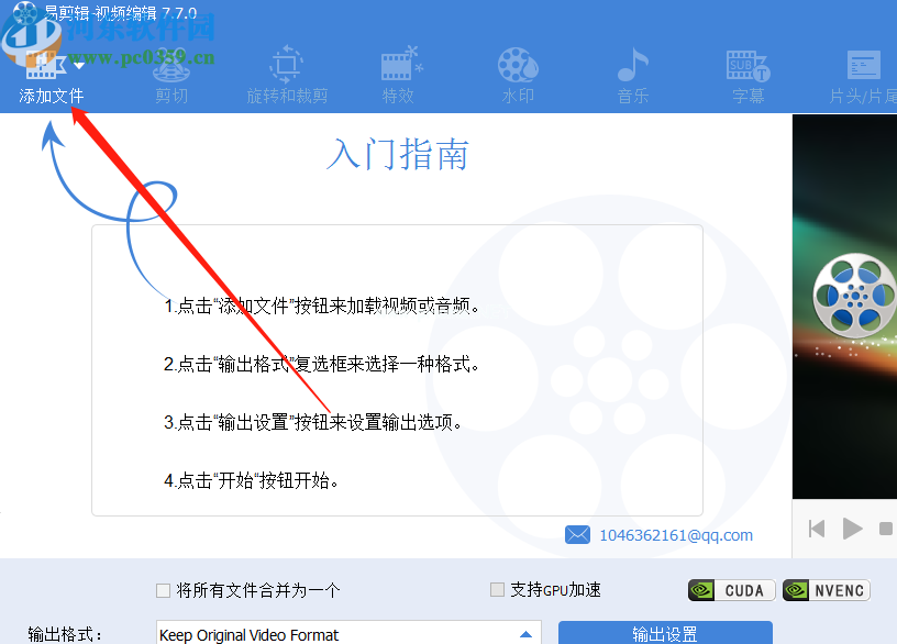 2.进入视频编辑工具界面后,我们需要点击界面左上角的添加文件按钮,然后点击添加要剪切的视频文件。