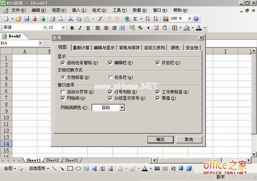 很容易通过WPS Table 2005中的视图选项设置网格线的默认颜色
