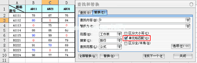 按组合键打开“查找和替换”对话框,选择“替换”选项卡,单击右下角的“选项”按钮,并选择扩展选项中的“单元格匹配”复选框。