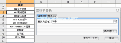 将找到两个单元格“WPS表组件和表组”。