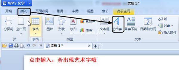 单击导航栏中的“插入”将切换导航,此时我们可以看到艺术字选项。