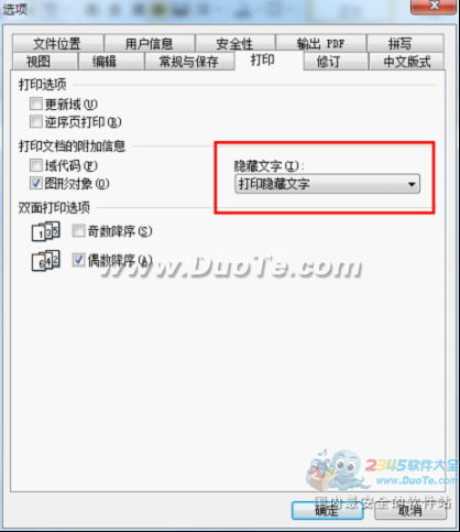 3.选项——打印,选择“不打印隐藏文本”。