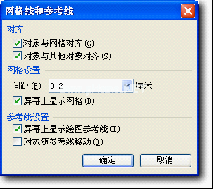 依次单击“尝试-网格和参考线”,弹出“网格线和参考线”对话框,选择“将对象与网格对齐”、“将对象与其他对象对齐”、“在屏幕上显示网格”和“在屏幕上显示绘图参考线”等几个项目,单击“确定”完成设置。