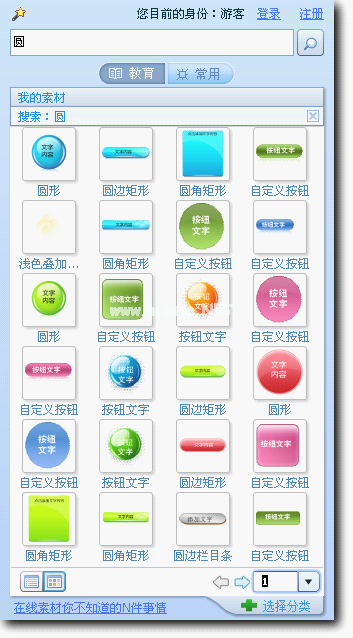 ,搜索更多相关信息。点击底部的上一页或下一页浏览资料。选择满意的圆形图案。双击后,它将自动下载并粘贴到您的演示页面。