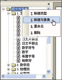 单击菜单命令“视图”工具栏“图形符号库”以显示图形符号库工具栏。右键单击图形符号库的名称,从快捷菜单中选择新建对象集,如图4所示。然后,在弹出的对话框中,命名新创建的对象集,如“部首”。