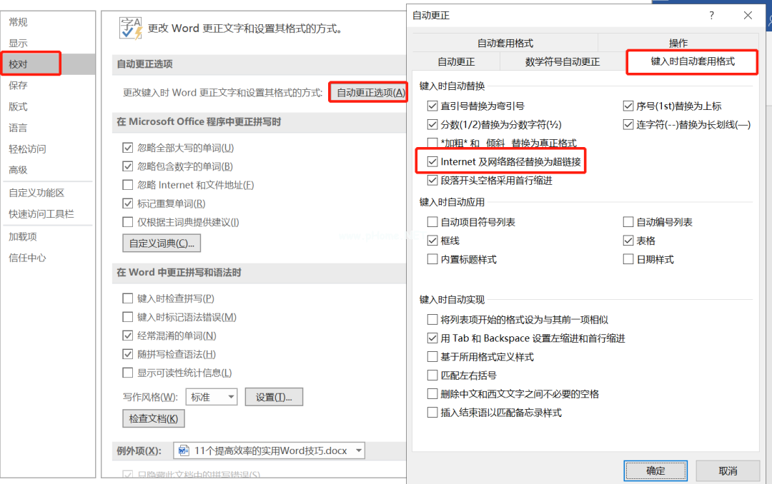 如果要永久取消文本中的超链接,可以单击文件——校对——自动更正选项——键入时自动应用格式,并取消互联网和网络路径,用超链接替换它们。