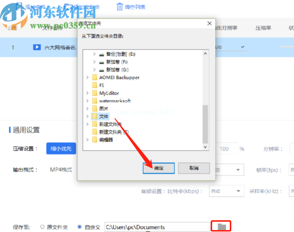 5.设置好压缩参数后,我们点击界面底部的保存到功能按钮,然后我们可以点击文件夹图标来设置文件的输出存储路径。你可以根据自己的需要来选择。
